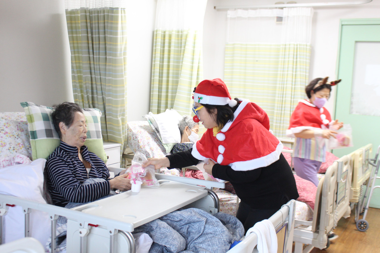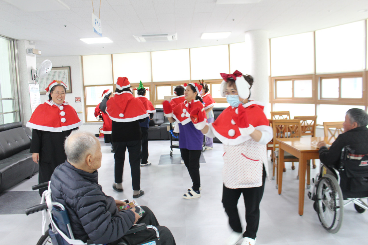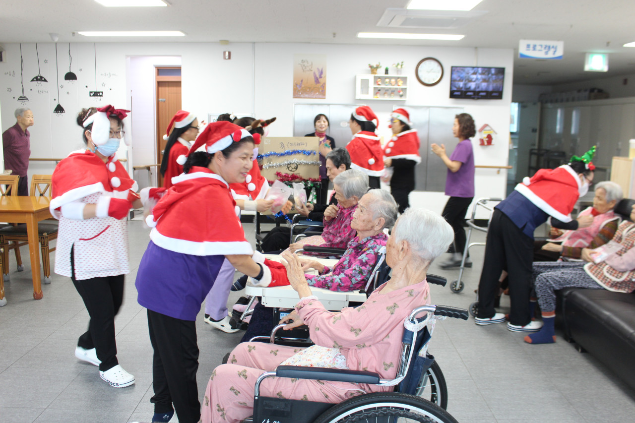 인지기능프로그램 및 여가프로그램, 신체프로그램을 진행하였고, 성탄절을 기념하며 어르신들에게 성탄노래와 작은 선물을 전해주는 시간을 가졌습니다!! ^^ 또한, 어르신들이 제일 좋아하는 일일장터도 함께 진행하였습니다~