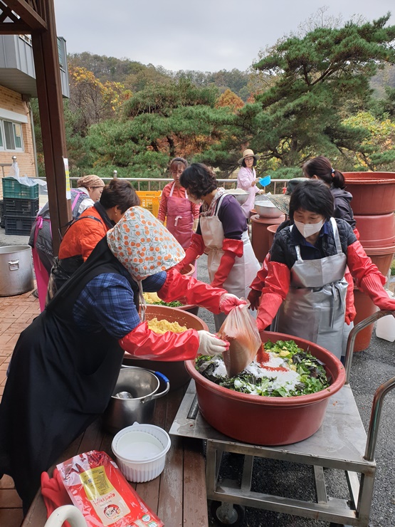부재료를 손질하고 양념장을 만들고 배추를 버무리고 포장하는 과정까지 원장수녀님과 직원들을 비롯하여 지역사회 자원봉사자들의 사랑과 정성이 가득 녹아들어 엄청 맛깔난 김치가 되었습니다.
